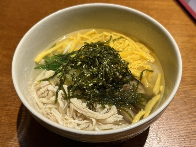 〆にはやっぱり「鶏飯(けいはん)」!優しい鶏出汁に具材を乗せていただくスタイルで、ほっと落ち着く味わい。しらすや錦糸卵、きざみ海苔などが彩りも良く、最後の一口まで楽しめました。