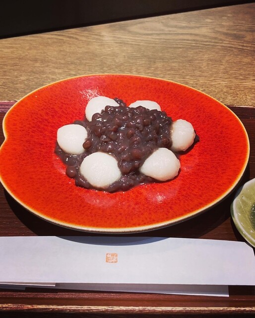 たっぷりの小豆はひんやり。夏だから冷やしてくださってるのでしょうか。ほんのり温かいお餅と合わさってとってもおいしかったです。