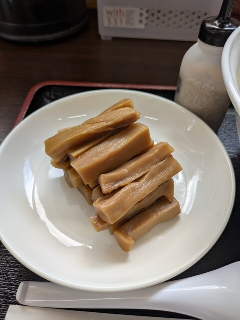 デフォで入ってるメンマは極太、程よい歯触りが良いクセになるヤツ(笑)なのでトッピングメンマを頼んでしまいます✨️