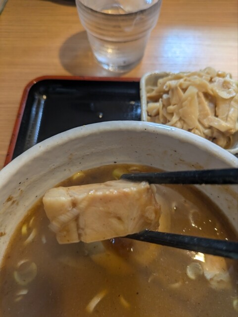 つけ麺つけ汁✨️食べ応えあるゴロゴロチャーシューやメンマ、味玉はめっちゃ旨い