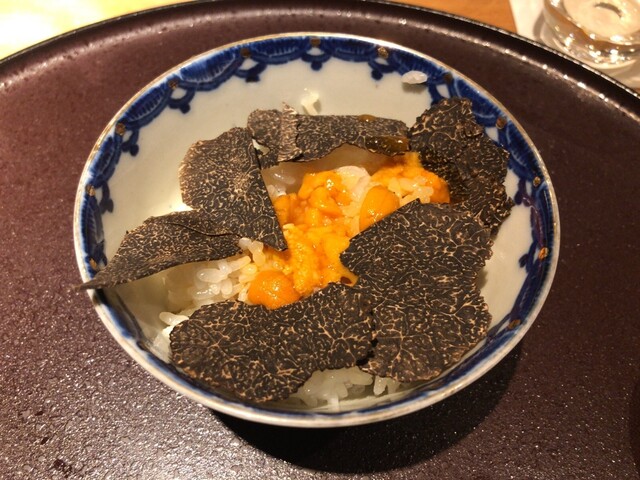 ★夏トリュフご飯(プレーン&卵入り)、毛蟹入り、北紫雲丹載せ、唐墨掛け