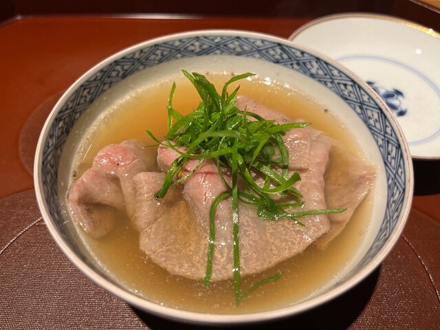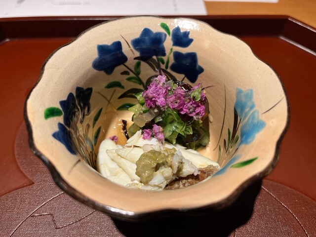 →まずは羅臼と近海鰹節のお出汁から♫これなんですよね!私の好きなお出汁は!美しく澄んでいるのですが、素晴らしい香りを纏い、立体的な旨みが押し寄せる…そして朝堀りの筍(^^)栗のような素晴らしい旨みと食感!旨いなぁ♡
