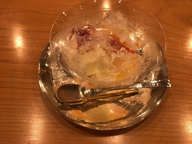 →甘味も随分と進化なさっていて♫鳥取の果物を存分に使う和菓子で洋梨のゼリー寄せとあんぽ柿の羊羹の2層仕立て(^^)いずれも素晴らしいです!スイーツオヤジも大満足でございますm(_ _)m