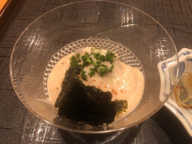 →久しぶりに食べたくてリクエストした手造り胡麻豆腐(^^)まる仕立ての椀ネタにもなる胡麻豆腐なので、鼈との相性も良いですね!濃厚で円やかな胡麻豆腐は期待の味わい♫嬉しかったです!