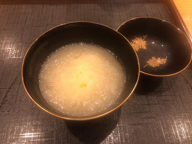 →この日の鼈の大トリを飾るのは餅入のまる雑炊(^^)美しく味わい深い鼈出汁の雑炊は間違いないのはいうまでもないのですが、ここに餅が入ると更にパワーアップされますね!流石の光井大将です\( ˆoˆ )/