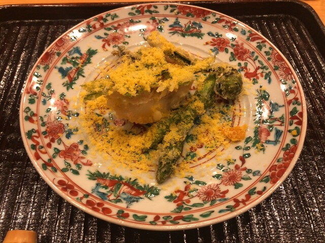 →まずは優しい旨みの蛤とホワイトアスパラの温かい飯蒸しで夜風に吹かれて少し冷えた身体を優しく温めてくださいました♪