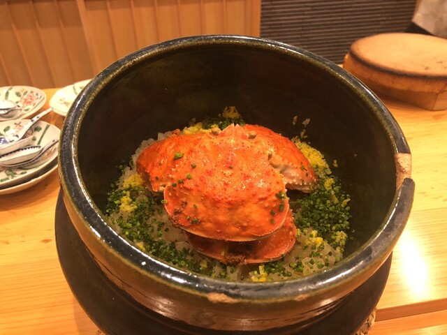→昨年驚愕した勢子蟹たっぷりの炊き込みご飯!今年もトッピングの4匹の勢子蟹は甲羅だけではなく、中にはぎっしり勢子蟹の身と内子と外子が入っていて、それを豪快に全て投入\( ˆoˆ )/そもそも炊き込みご飯にも蟹が入っていながらのこの勢子蟹の投入はやはりとんでもないですよね♡そして角切りの大根も一生に炊き込まれており、これがまた良いアクセントなんですよね♫この勢子蟹大根飯はやっぱり最高\( ˆoˆ )/光井大将!本当に有難うございますm(_ _)m