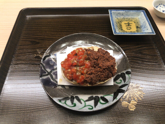 →まさに衝撃的な香箱蟹に出会ってしまいました\( ˆoˆ )/実際モノが素晴らしいのは当然!そしてその絶品朝獲れモノに絶品の火入れ♫内子がレアでプルプルって…あり得ない!雑味ゼロで旨味も香りも桁違い!外子もプチプチ感も突き抜けて…火入れが抜群なんでしょうね(^^)まさに「出会ってしまった…」と感じた次第♡蟹酢も用意してくださいましたが、完全に魅せられて何も付けずに一気に食べてしまいました(^^)