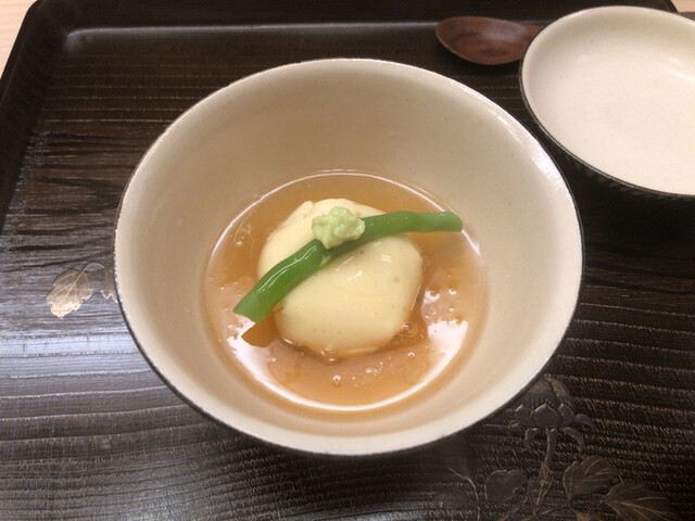 →まずはお出汁を♪美しいお出汁のままです!そして九絵は肉厚でゼラチン質を存分に味わえますね(^^)白髪葱の食感と柚子の香りが心地良かったです!