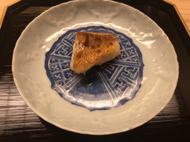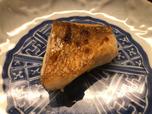 →続いては大きな喉黒の炭火焼♫産地は脂の乗り過ぎを避ける為に敢えての徳島との事!仰る通りで程良い脂の乗り(^^)しつこさや重さとは無縁!そして勿論素晴らしい火入れ♪