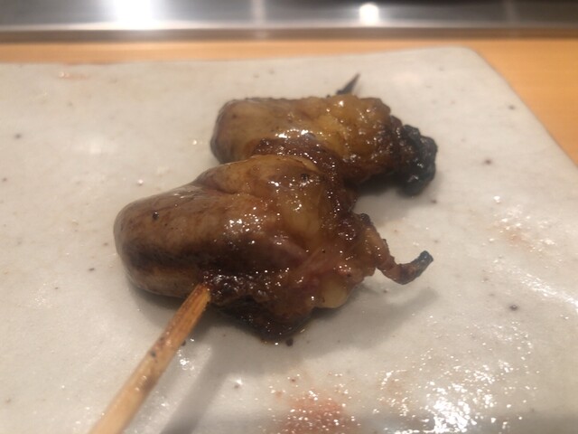 →やはり肝と身を一緒に楽しめる背肝は外せません!勿論高坂鶏の肝と身を石井大将の火入れですから、旨みも軽やかさも最高です(^^)