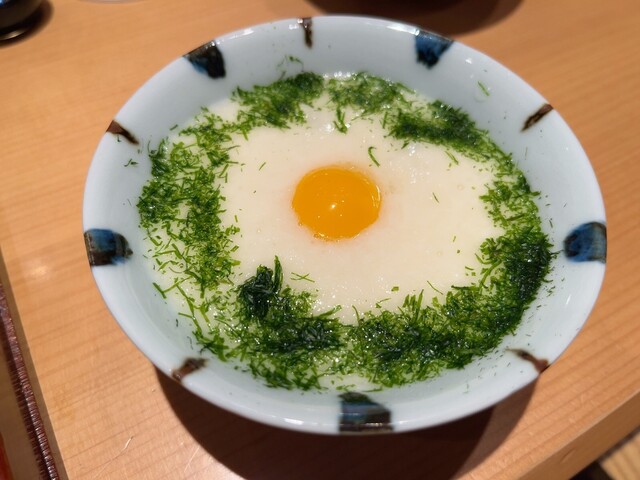 →最後はシグニチャーとも言えるちょうちんで串を締めました\( ˆoˆ )/このちょうちんこそ火入れが本当に難しいと思いますが、やはり黄身への絶妙な火入れが温かい黄身ソースを満喫させる秘訣なんでしょうね♪