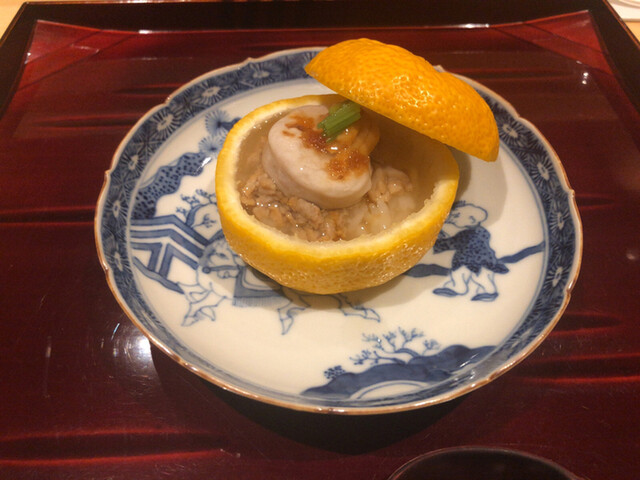◎鮨飯、あん肝、虎河豚白子の柚子釜→虎河豚白子にあん肝とは…でもそれらを見事に柚子釜で品良く合わせるのは見事!旨い!