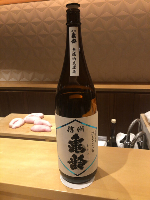 それでは"篠原大将"とお弟子さん達による五感で楽しむ世界を存分に堪能したいと思います♪ドリンクは命の水をお任せで…と思っていましたが、スペシャルな1本をじっくりと頂く事になりました\( ˆoˆ )/