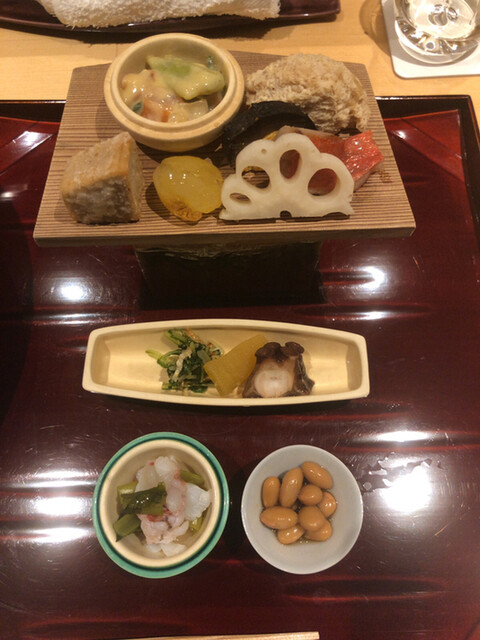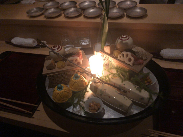→「銀座しのはら」さんと言えば素晴らしい盛り込みの八寸がやっぱり名物ですよね!そしてその八寸は季節感たっぷりで本当美しいんです(^^)いずれのお料理も手間暇掛けてしっかりと作り込まれていますから間違いなし!ただこの八寸クオリティでお節料理を用意したら…恐ろしい事になるのは間違いないかと。。。ですから用意しないでくださいm(_ _)m個人的には柿の白和え、石垣豆腐、鼈煮凍り、揚げパンがストライクでした♫