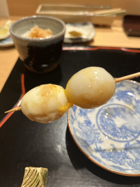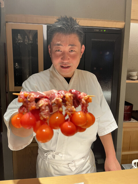 一通りのコースだけでも、もう大満足の内容で、この私でもお腹七分目といったところでしたが、追加の串を選べるとのことで、見てみると....これか....皆さまがほぼ100%頼まれている「ちょうちん」は。即注文です。ソリレスもいってしまいました。