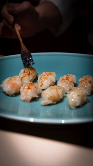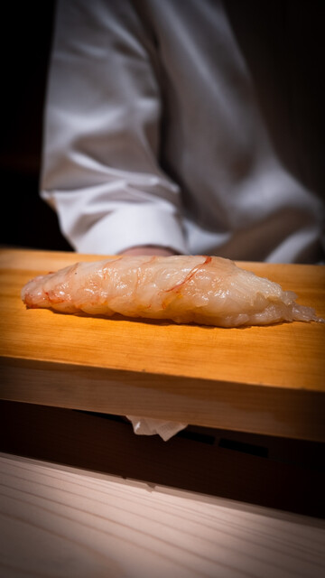 高平氏が手掛ける鮨は、愛媛の名漁師である藤本さんの魚を使用し『魚のストレスを無くして使う』を意識されており、独自の技法で素材の旨味を最大限に引き出す。