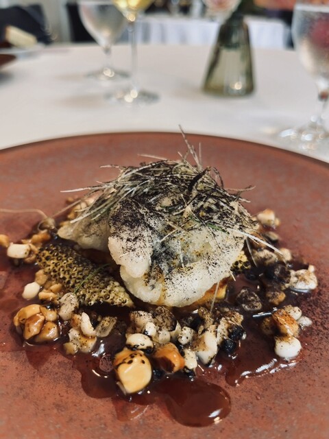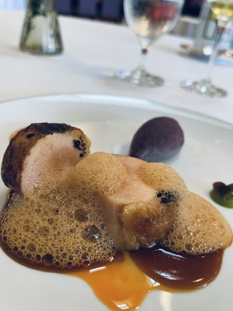 甲殻類のソースでいただく伊達鶏のメイン…