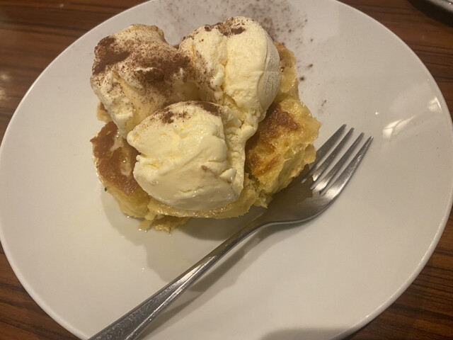 今回は、焼きポテトサラダと野菜焼きのセット、低温調理のA5ランクステーキ肉(100g)、ハンバーグ、3種のチーズの玉子焼き、広島お好み焼き(どんどこスペシャル)、幸せのホットケーキをいただきました。