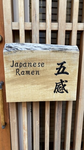 テーブルチェックで11時30分の回の予約が取れ2度目の訪問は妻と。前回は「ワンタン塩らぁめん」を食べたので、今回は「ワンタン醤油らぁめん」と、「塩つけめん」をオーダーしようと思ったら、つけめんは「限定地鶏煮干し出汁の醤油つけめん」となっていたので、これの大盛をそれぞれオーダー、妻とシェアして頂く。醤油らぁめんは、塩らぁめんに比べて貝の存在感は控えめな印象で、鶏の旨味を多少強く感じる仕上がり。重厚な醤油感溢れるキレも相まって出汁の深みと芳醇な旨味が重層的に語りかけてくるような上品なスープだ。このスープに合わせてる麺は塩らぁめんと同じストレート中細で、コメントは前回の通り。具材のワンタンやチャーシューも塩らぁめんと同じものでコメントは前回の通りだ。次に限定のつけめん。つけ汁は醤油のキレを纏う、鶏と煮干しのバランスが絶妙な出汁感。これに合わせる麺はストレート中太平麺で幅狭のきしめんのような見た目で、麺だけで食べるとちゃんと小麦の風味が味わえ、啜るとしなやかで滑らかな舌触りと啜り心地に喉越しの良さが楽しめ、この凛々しい麺につけ汁の華やかな風味を纏わせいただく優美な味わいは絶品で、胃袋を虜にする旨さだ。具材は豚と鶏のチャーシュー、焼き海苔、刻みネギでメンマなどは無く意外とシンプル。肉の旨みに溢れ柔らかくホロホロなチャーシューは、ひと手間かけた丁寧な仕事が感じられる仕上がりだ。割りスープの代わりに、味変にと、店主から別に供された、かぼすのスライスが浮かぶカツオ昆布出汁を残ったつけ汁に注ぎ入れ味わうと、染み染みとした風味豊かな出汁の余韻に存分に浸れるが、汁完してしまうと名残惜しいこと、この上ない。前回の塩らぁめんといい、今回の醤油らぁめん、限定つけめん、いずれのメニューも店名の通り「五感」を研ぎ澄ませ、一口一口噛み締め味わいながら頂けば至福のひとときが体感できる、淡麗系では圧倒的な存在、そんな一杯を食べさせてくれる最良のお店だ。唯一、コスパが今ひとつなことが難点だが‥‥