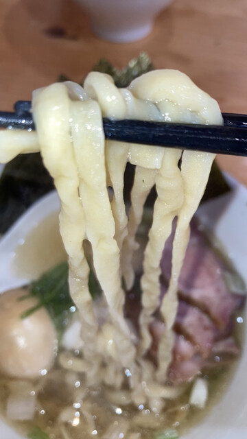 芳醇なスープと、もっちりプルンとした極太手もみ麺とが奏でる、パワフルな淡麗系の逸杯に昇天‼️