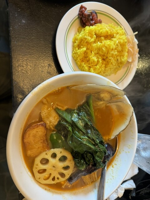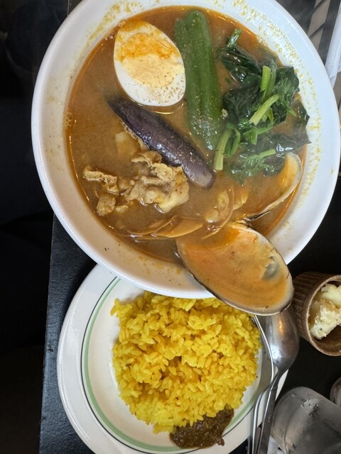 この日は焼きニラと豚角煮はまぐりのスープカレーで全ての具材最高でした!