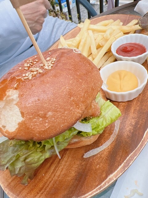 ダブルチーズバーガー。ポテトもオリジナル?の物で、塩がきいてて美味しかったです。高さ20cm以上。