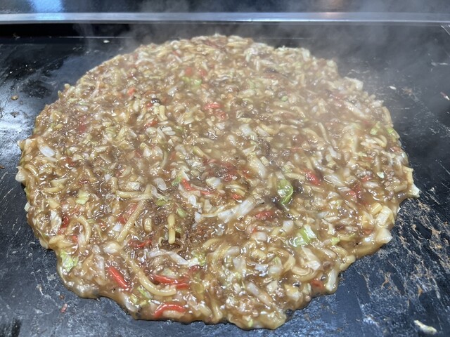 麺が入った事で〆のもんじゃになりました