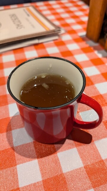 細長く絞ったおしぼりと麦茶が出され、続いて熱いスープもすぐに提供されました。