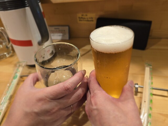 ノンアルの私と、焼酎がっつりのなほちゃんと乾杯。