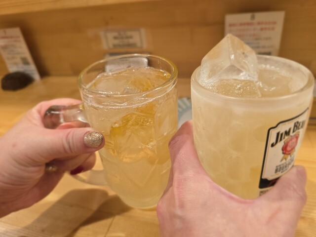 で、実は「資さん」に行く前に、焼けた後復興しようとしている鳥町食堂街にて、焼酎ハイボールを飲む3人。