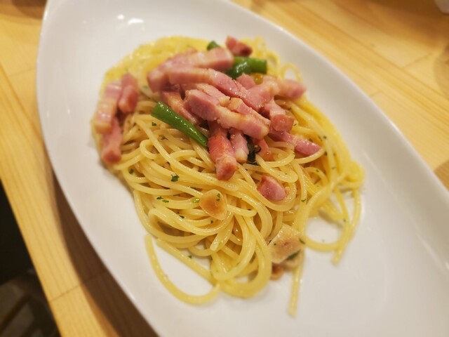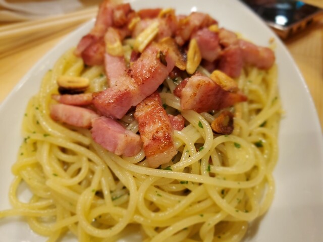 ベーコンがうんまいの。ガーリックたっぷりがニンニク好きには堪らのんの。