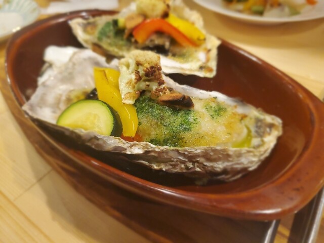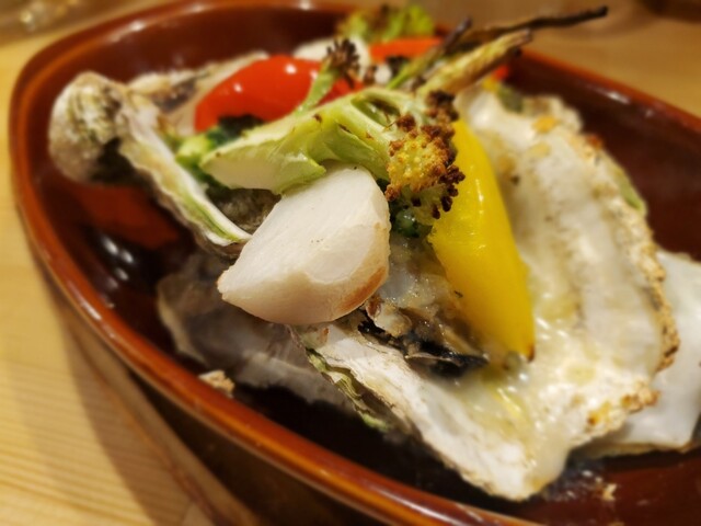 .•♬生ものがちょっとだめな小倉会の1人。なので火の通った牡蠣を注文。