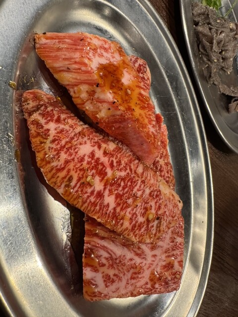 リンゴの千切りを焼いたお肉に包んで食べるメニューがあり、珍しいので頼んでみました。私はとても美味しく感じました。別にリンゴなくてもいいと言う人もいるだろうけど、ジューシーな感じが脂ののったロースのお肉にピッタリでした。