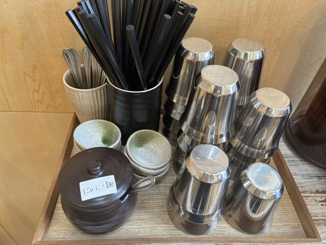 半分くらい食べた所でレンゲに麺とスープを乗せてニンニク麹入れて食べる(。・ρ・)ジュル