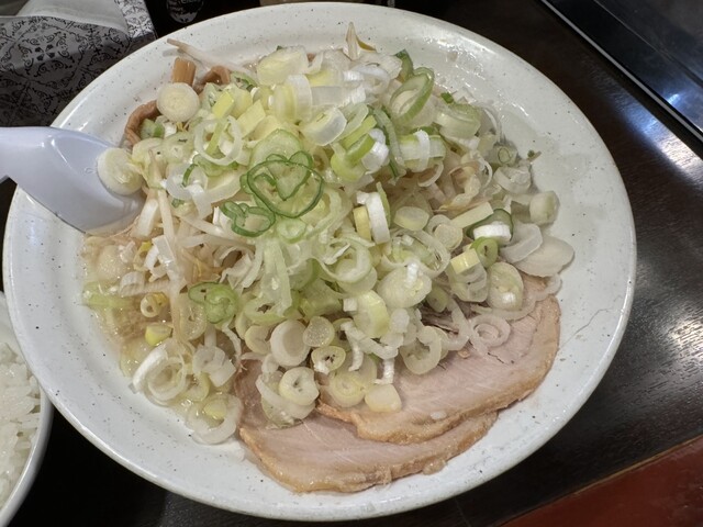 ラーメン薬味多めアブラ多めでこれ。ライスは付けなかった。自己申告しないとつかないので注意。薬味多めのネギは普通の店の有料のネギ増し以上に入る。開花楼の麺は相変わらず至高。