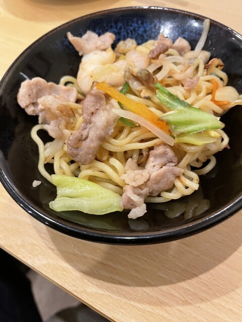 開発中のメニューのおつまみ焼きそばをサービスでいただきました。美味い。ぜひ本メニューにしてほしい。