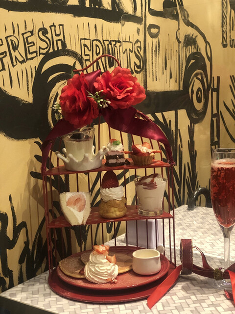 ほんとに可愛い真っ赤な鳥かごのアフタヌーンティー