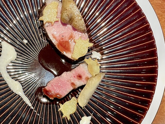 美しい逸品は目でも楽しませてくれますが、目の前に届けられる饗応の数々が舌を唸らせる。特に前菜6品が絶品すぎ。ゴルゴンゾーラのミルフィーユや銀杏と生ハム、フグなどアニチューブの片野さんの表現をお借りすると、グルーヴに気絶する!