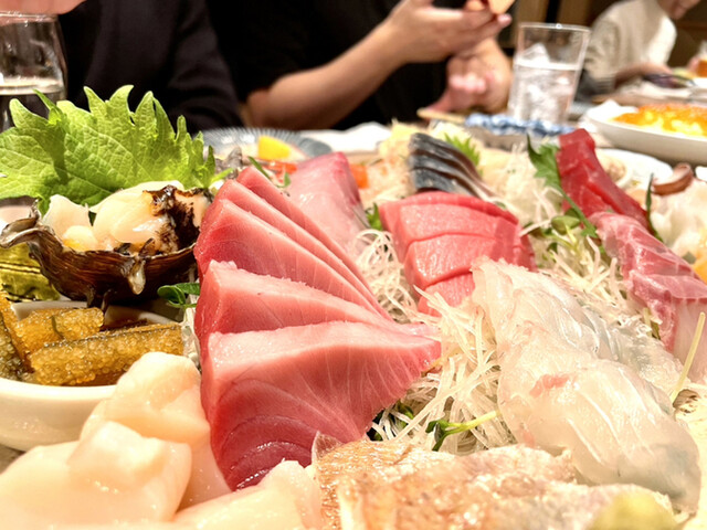②注文必須は海鮮盛り合わせ!!これがすごすぎる!!16種類くらいあってね、ネット情報によると値段がなんと1人1,750円だとか…普通に都内のお店だったら4,000円くらいはするから理解不能そして1つ1つのネタのクオリティが異次元!!なんで東京の居酒屋でこんなに新鮮な刺身が食べれるのか不思議でしょうがない