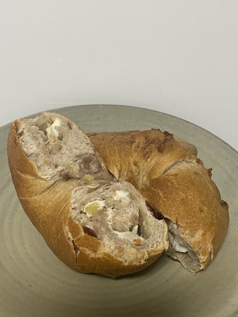 ベーグルはサーモンやハムを挟むとか、クリームチーズを塗るとかのイメージだったのですが、中にも具がギッシリで驚きました!