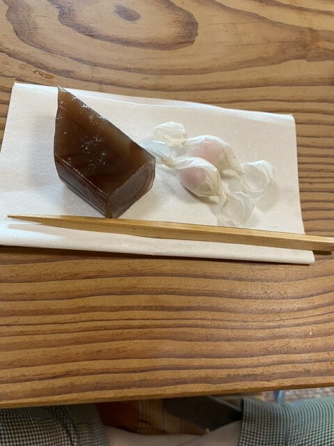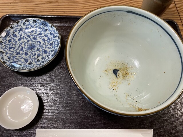 妻と友達は、天ざるそばにおにぎりと菓子つき抹茶