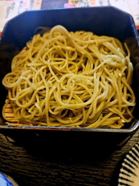 二色蕎麦の黒い平麺はお塩で
