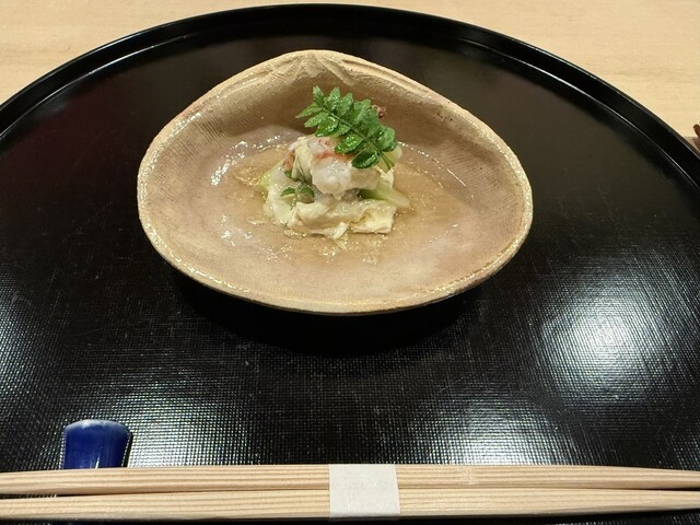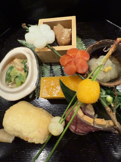 先付けから美しく美味しい料理でした、柚子?柑橘系のアクセントがいい