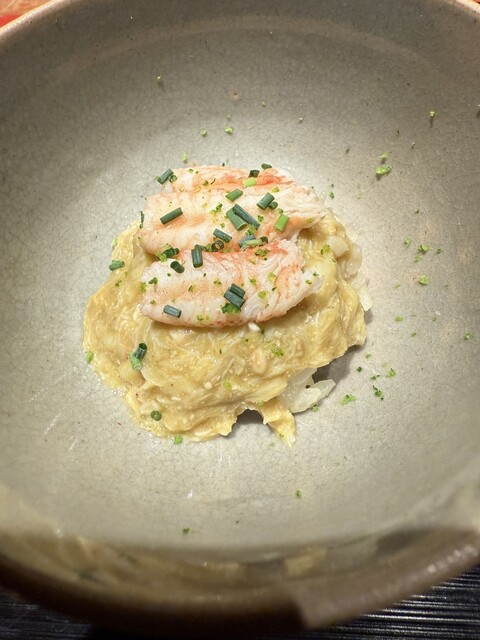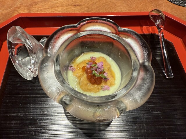 先付けは山形のだだちゃ豆のすりながし 出汁は貝?ー