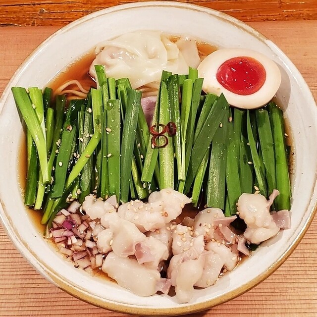 【黒毛和牛のもつにらぁ(塩)、しめのめし】
