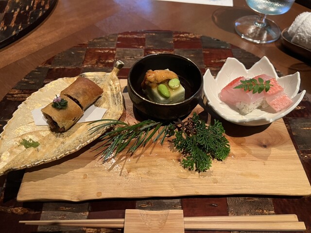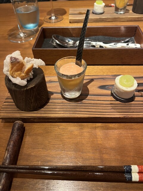何といっても立地が素晴らしく、建物の雰囲気も最高です。予約時間に訪れると、玄関の外でお迎え頂き、店内に案内されます。前田さんのお店から仕入れたお魚を中心としたお料理はどれも美しく、胃に優しい感じでした...