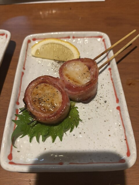ホタテベーコンのホタテもかなり肉厚でブラックペッパー×レモンにベーコンのジューシーさが素晴らしく口の中いっぱいに幸せでした。