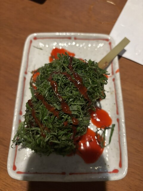 そして驚くのがつくね!大きいことは去ることながら梅しそはつくねが見えないほど森です