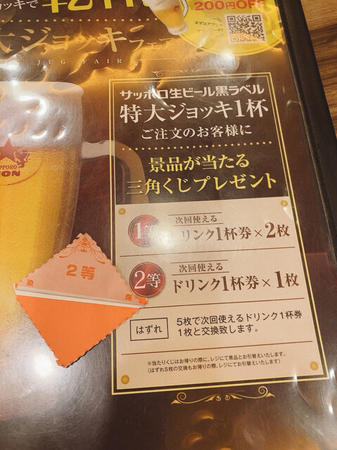 ※ハズレ5枚でグラスビール1杯無料だというので、ハズレ券を大事に持って帰ってきました(笑)